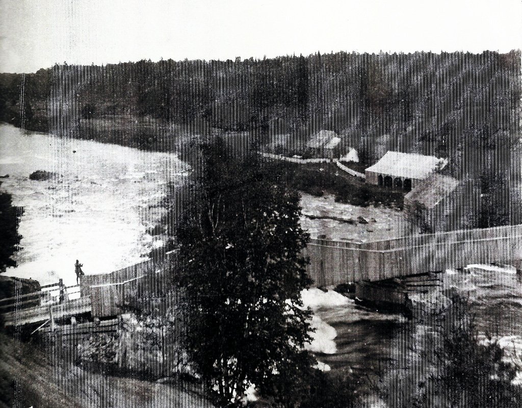 G. Brady raconte que dans les années 1940 il y avait encore des draveurs installés aux alentours de la Chute-à-Magnan pour faire passer les billots par-dessus le barrage. La compagnie Gatineau Power avait installé une glissière pour faire passer les billots que l’on voit sur ces 2 photos datées de 1932.
