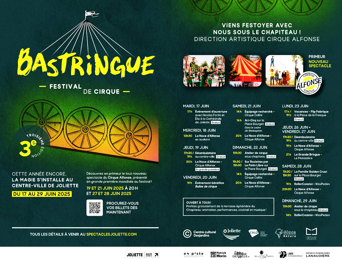Finalement le Cirque Alfonse qui a installé son chapiteau pour le festival de cirque Bastringue 2025 à Joliette y a fait son premier spectacle en 2012.