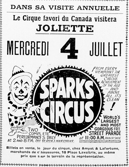 Le journal L’Étoile du Nord a continué à publier les annonces des cirques contrairement au journal catholique de Joliette. En 1934 le Cirque Barnes présentait son spectacle sur le terrain du Parc Joliette.
