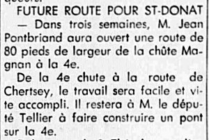 Les travaux ont été réalisés rapidement. En 1949 Jean Pontbriand a ouvert une route de 80 pieds de largeur de la chute-à-Magnan à la 4ème chute (Parc des Cascades), le boulevard Pontbriand d’aujourd’hui. Des articles dans la Presse parlaient du nouvel aéroport de Rawdon construit à côté du terrain de golf. Il y avait un hôtel, un restaurant, des pentes adaptées au ski, une plage… Une église et une école d’équitation étaient prévues.