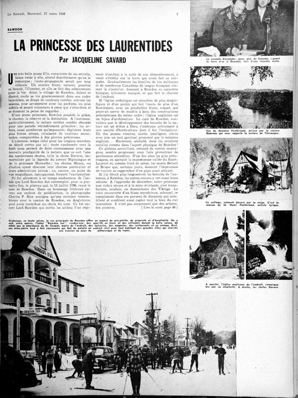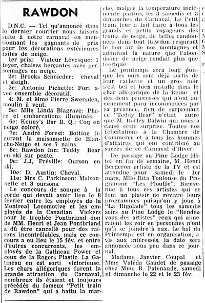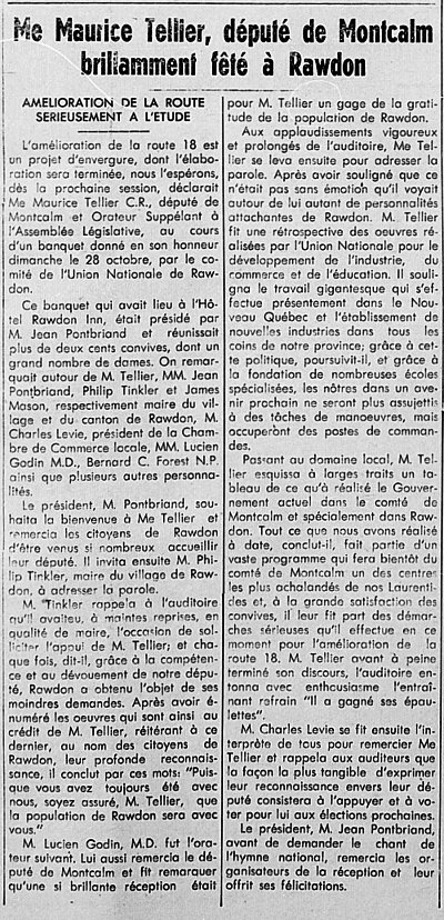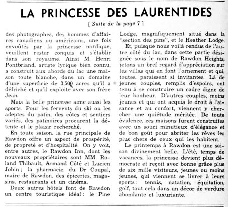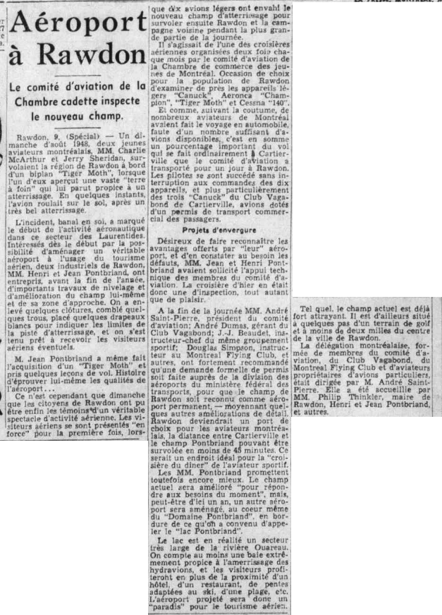 Le 27 mars 1948 le Samedi publie un reportage sur Rawdon rapportant que Henri et Jean Pontbriand exploitent un domaine de 3.500 acres qu’ils ont défriché.