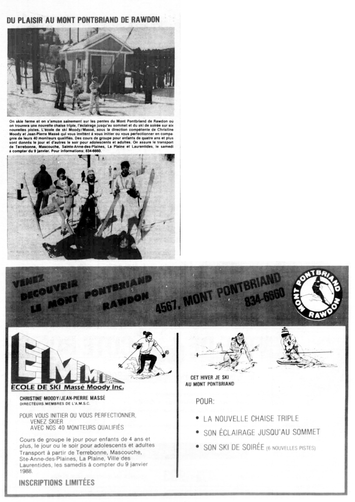 À la fin des années 1980 il y avait encore des annonces pour le centre de ski du Mont Pontbriand.