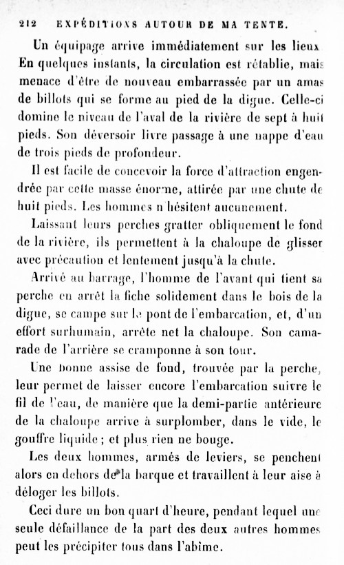 Les rapides étaient nombreux sur la rivière, quand il était impossible de passer avec le boat, les hommes halaient leurs embarcations. Aux chutes Dorwin à Rawdon le halage étant impossible les hommes traînaient les embarcations sur la rive.