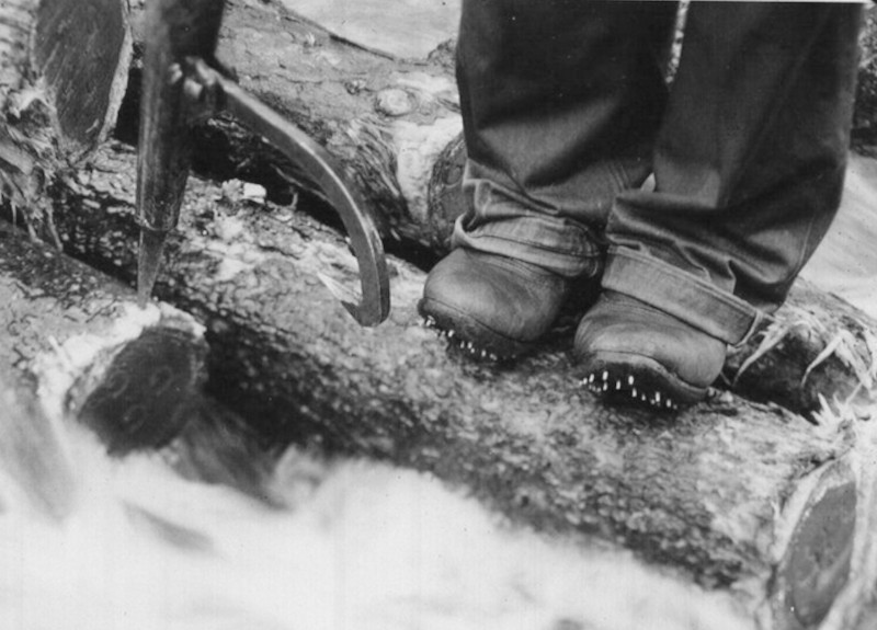 À bord des boats, les draveurs suivaient les pitounes sur l’eau. Les hurlots, eux, fermaient la marche. C’est donc à pied que Georges-Émile effectua le trajet de St-Donat, longeant les rivières Ouareau et l’Assomption, jusqu’à Charlemagne. Comme la plupart des autres draveurs, le jeune homme était chaussé de bottes cloutées. Les pitounes s’accrochaient un peu partout et à n’importe quoi. Les hurlots ne devaient en oublier aucune…