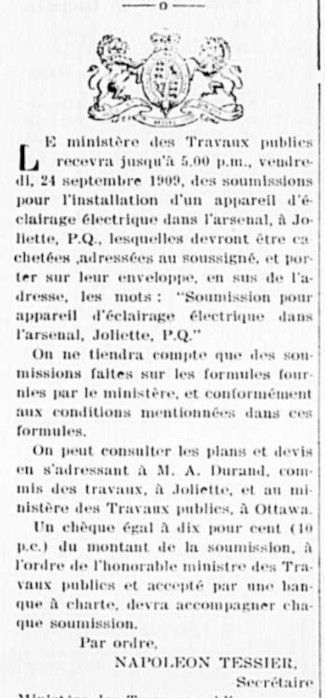 Alphonse Durand a aussi construit en 1909 un arsenal pour le gouvernement fédéral. Le bâtiment de la rue Archambault abrite aujourd’hui les bureaux de la Société d’Histoire de Joliette. Il aurait été construit en 1908 selon la ville de Joliette mais Wilfrid Laurier n’a approuvé le budget d’achat du terrain qu’en mars 1909.