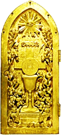 D’origine française Marie Schwerer vivait aux États-Unis où elle faisait ses études. Vers 1876 jusqu’à 1881 Alphonse Durand a étudié la sculpture à New York et il y a rencontré Marie Schewer, qu’il a épousé en 1883. La chapelle du Sacré-Coeur du Séminaire de Joliette a été construite en 1881 et ils avaient été engagés tous les 2 pour y faire des travaux de sculpture, leur première réalisation à Joliette. Fragments du retable de la chapelle du Sacré-Coeur – Alphonse Durand et Marie Schewer sculpteurs, bois, feuille d’or – Collection du Musée d’art de Joliette.