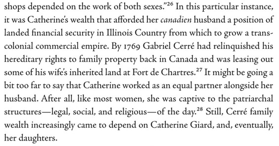 Gabriel Cerré était presque toujours parti en expédition pour la traite des fourrures et sa femme Cathrine Giard devait gérer la ferme et les propriétés. Les fermes très prospères de la famille produisaient 300 minots de blé et 500 de maïs en 1791 alors que la région des Illinois nourissait la colonie de la Nouvelle-Orléans.