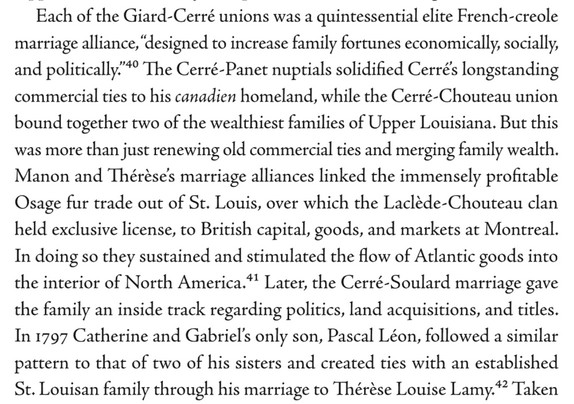 Robert Englebert dans une histoire du St-Louis français met en évidence l’importance de la famille de la femme de Gabriel Cerré. Son père Antoine Giard était un fermier prospère.