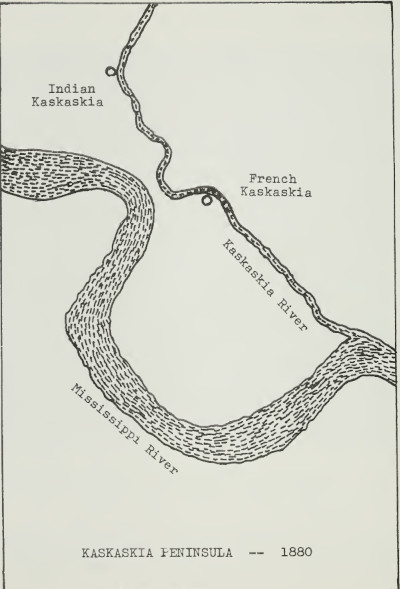 En 1703 un millier de membres de la nation des Kaskaskia sont arrivés sur la péninsule entre le Mississipi et la rivière des Illinois, accompagnés de pères jésuites qui les avaient convertis et par des taiteurs de fourrures canadiens français qui avaient épousé des femmes kaskaskias.