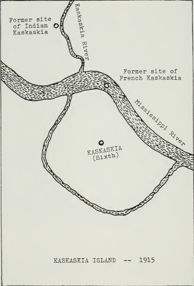 En 1785 le fleuve Mississipi déborda et endommagea tous les bâtiments de Kaskaskia. En 1844 une nouvelle inondation détruisit de nombreuses maisons puis en 1881 le Mississipi changea de parcours en empruntant la rivière Kaskaskia et transforma Kaskaskia en une île. L’ancien village de Kaskaskia a disparu, englouti par le fleuve.