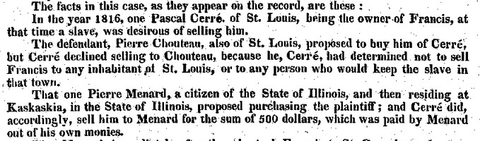 Dans un autre cas de la Cour Suprême opposant Francis Lagrange alias Isidore, homme de couleur, à Pierre Chouteau, Pascal avait refusé de vendre un esclave à son neveu Pierre Chouteau qui avait alors utilisé un prête-nom.