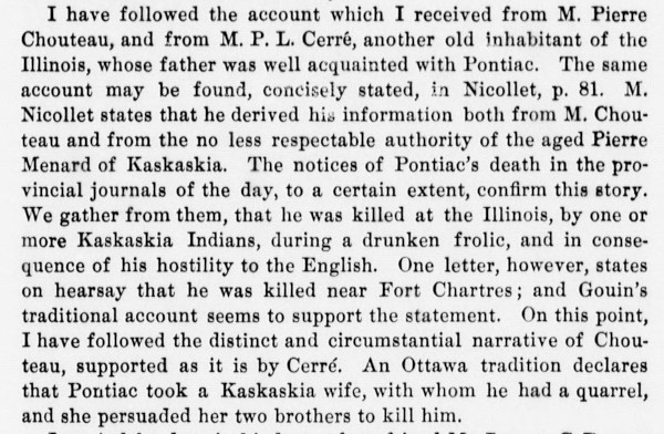 Dans les livres sur l’histoire de la colonisation du Mississipi le nom de la famille Cerré revient très souvent. Pontiac le chef qui avait mené la révolte des nations indiennes contre les anglais après la Conquête connaissait bien Gabriel Cerré. Il a été assassiné en 1769 près du fort de Chartres par des indiens de Kaskaskia.