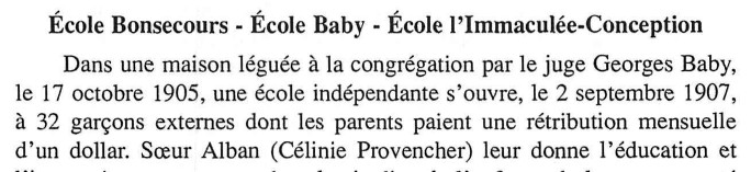 Le legs au collège des clercs de St-Viateur avait pour condition que 2 enfants portant le nom Baby pourraient y être instruits gratuitement à perpétuité.