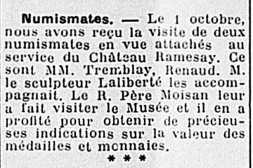 En 1885 il y avait un musée au Séminaire des Clercs de St-Viateur de Joliette présentant entre autres des médailles et des monnaies. Dans son testament le juge Baby a seulement légué sa bibliothèque de livres français au collège Joliette mais plusieurs articles historiques mentionnent qu’il lui aurait aussi donné une collection de monnaies et médailles. Dans le dictionnaire biographique du Canada on lit: il constitue l’une des plus belles collections de médailles et de monnaies au Canada qu’il lègue au collège Joliette. Il a sans doute fait ce don avant de rédiger son testament.