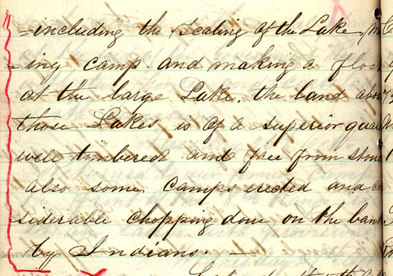 Sur un autre plan de Francis P. Quinn daté du 15 janvier 1859 il avait dessiné un lac nommé Indian Lake sur les lots 20 et 21 du 8ème rang de Chilton situé au nord de la rivière Dufresne et au sud du lac Ouareau. Le lac s’appelle aujourd’hui Lac Sauvage. Dans son carnet d’arpentage le 29 octobre 1858 il avait noté: considerable chopping done on the banks by Indians.