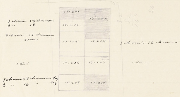 Les superficies des terrains sont données en arpents dans les premiers actes notariés puis en acres dans les actes rédigés en anglais sans que les notaires fassent la différence; en réalité 1 acre vaut 1,18 arpent.