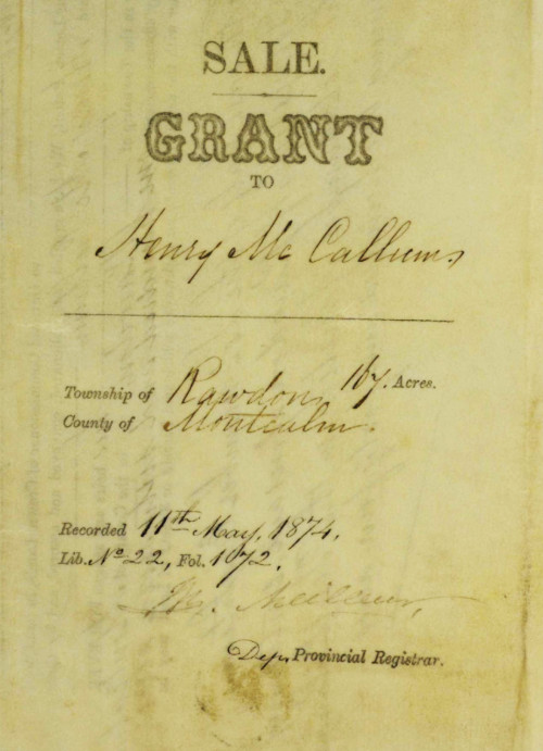 8 juin 1916 – Sale by John McCurdy to the Corporation of Rawdon d’une partie du lot 18b du 5ème rang pour l’ouverture d’une rue allant de la rue Metcalfe au lot 18a et vers le 5ème rang.
