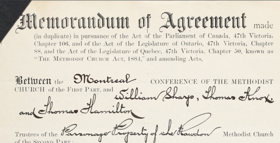 10 avril 1913 – Sale by the trustees of the Methodist Church to Oscar Landry de 17-151-5 sur la rue Queen.