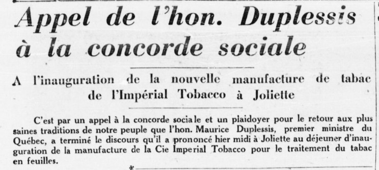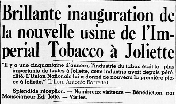 En 1947 la nouvelle usine de l’Imperial Tobacco a été inaugurée par le premier ministre Maurice Duplessis et le député Antonio Barrette, elle a aussi été bénie par Monseigneur Edouard Jetté.