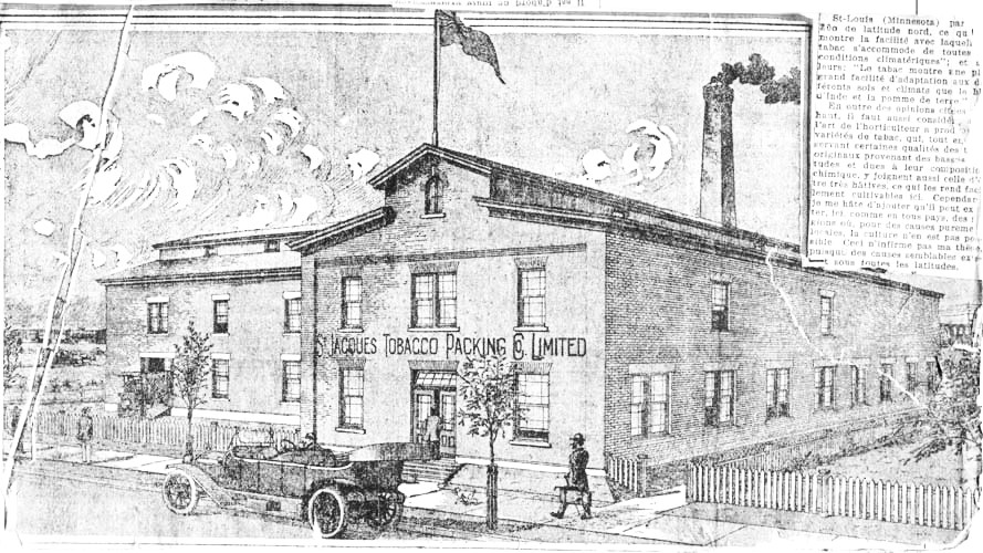 En 1912, après un deuxième référendum, à l’effet d’obtenir un octroi de $10,000 pourvu que, chaque année, $6,000 seraient annuellement versés en salaires et que 300,000 livres de tabac seraient achetées à Saint-Jacques, M. Cusson bâtissait sur la rue Venne, la Saint-Jacques Tobacco Packing qui devint la Duys Canadian Tobacco. (Saint-Jacques une Nouvelle Acadie).