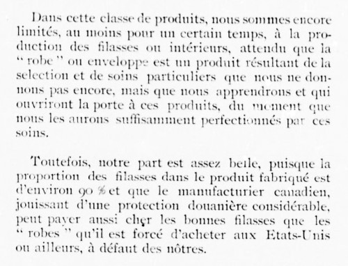 La culture et la préparation du tabac nécessitaient des opérations délicates et du savoir faire; il y avait encore des améliorations à apporter aux procédés de culture et à la mise en marché de la récolte. Notre tabac ne subit qu’une préparation et vendu ainsi, il ne peut se conserver dans la saison chaude; les cultivateurs tiennent pour diverses raisons à s’en débarrasser avant le printemps. De leur côté, les commerçants connaissent ce défaut et craignent du faire du stock au delà de ce qu’ils croient pouvoir vendre dans la saison d’hiver.