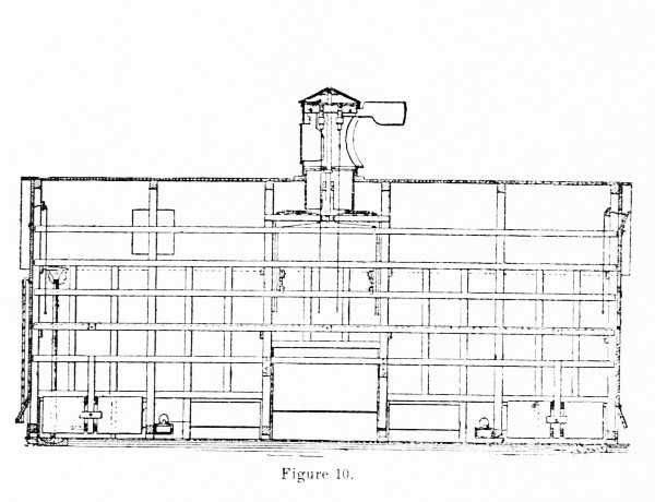 Le système de ventilation consiste dans une chambre à air située à 2 pieds sous le tabac à la base, des distributeurs d’air dans chaque section, la chambre à air verticale au centre de la bâtisse dans toute sa longueur leurs tuyaux les unissant aux entonnoirs extérieurs du séchoir, la tourelle rotative, les portes…