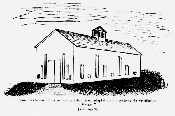 La valeur marchande du tabac produit dépendait pour beaucoup du traitement qu’il recevait pendant le curing, opération qui consistait à fixer dans le système cellulaire les huiles et les gommes essentielles qui sont moins abondantes sous notre climat. On ne peut atteindre ce résultat que par un contrôle absolu des courants d’air et de chaleur qui doivent déterminer la fermentation d’abord, et ensuite la vaporisation de l’eau contenue dans la plante. L’architecture des séchoirs est longuement détaillée dans le traité.